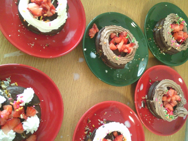 写真は、ユニットで行った「クリスマス忘年会」の様子。
